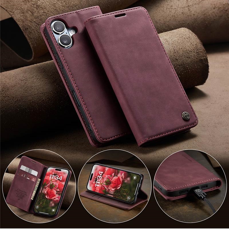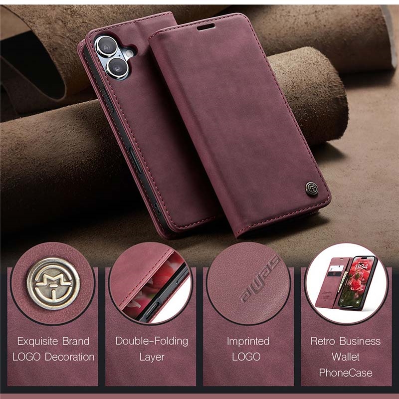 iPhone 16 Plus Caseme 013 Series Portemonnee Hoesje - Wijnrood