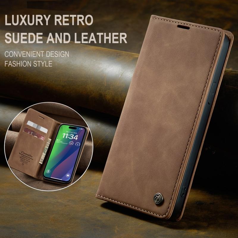 - Ingebouwde magneten houden de Caseme 013-serie portemonnee-etui gesloten