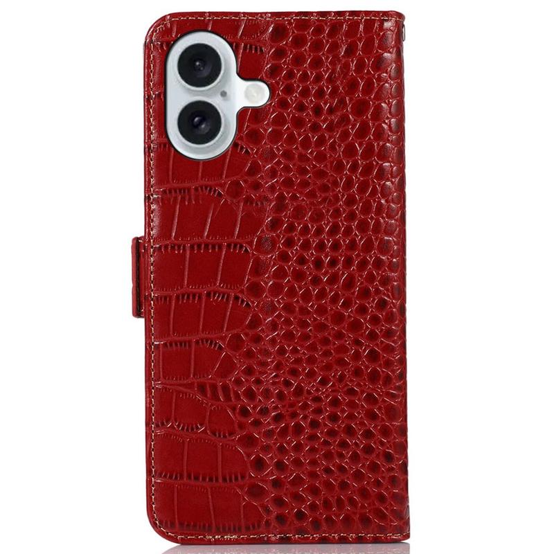 iPhone 16 Plus Crocodile Series Wallet Leren Hoesje met RFID - Rood