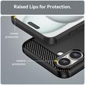 Het hoesje van geborsteld TPU beschermt je iPhone 16 Plus voldoende en geeft het een geweldige stijl, dankzij het koolstofvezelpatroon op de achterkant. De case zorgt ook voor oververhitting bij gebruik van je iPhone 16 Plus, met zijn ontwerp voor warmteafvoer.
