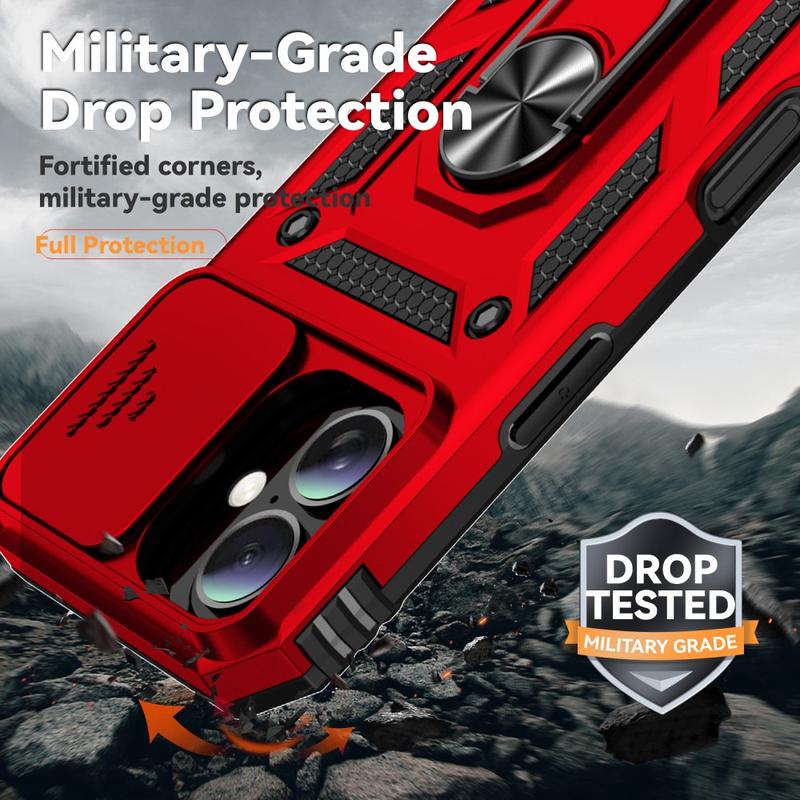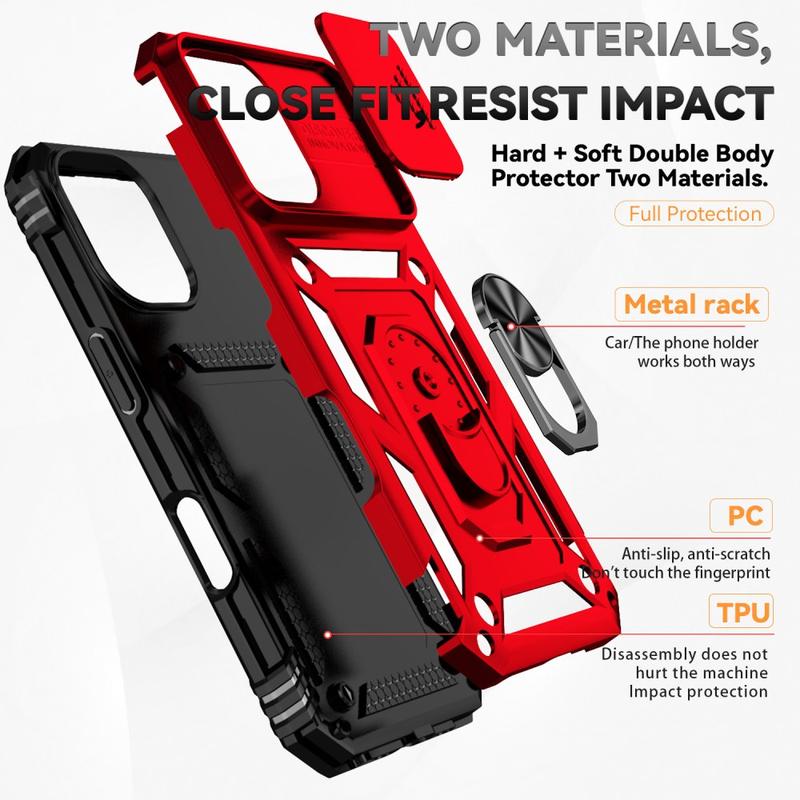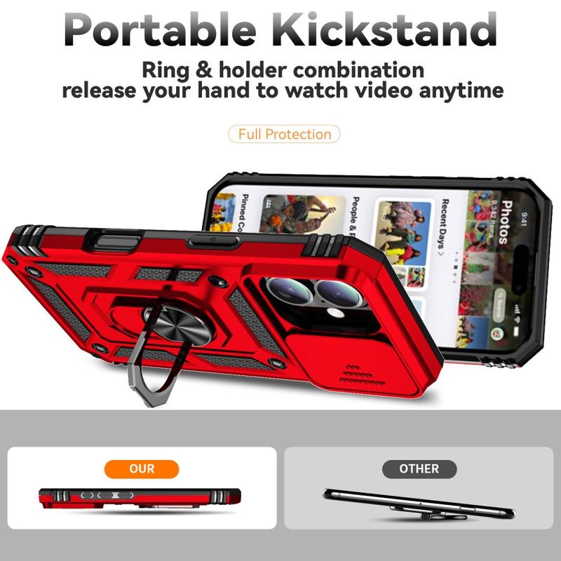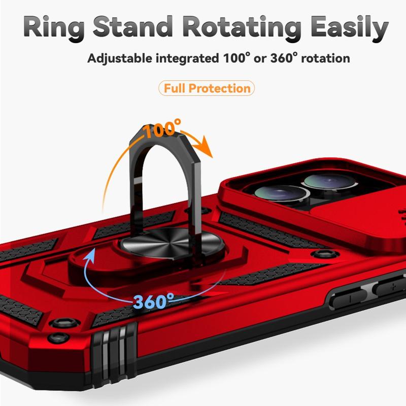 iPhone 16 Plus Hybride Hoesje met Roterende Ring en Cameraschild - Rood