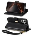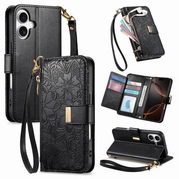Portemonnee Hoesje met bloemen en bladmotief met Ritszakje & Polsbandje voor iPhone 16