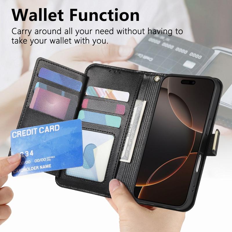 - Alles-in-één portemonnee: Meerdere kaartsleuven en een biljetvak over de hele lengte om geld, creditcards en ID's gemakkelijk op te bergen.