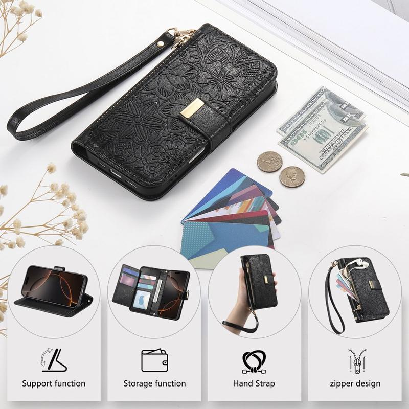 Houd je essentials georganiseerd terwijl je elegantie toevoegt aan je iPhone 16 met deze portemonneehoes met bloemenbladmotief. Ontworpen met meerdere kaartsleuven, een veilig ritsvak en een afneembare polsband, is het de perfecte mix van functionaliteit en stijl. Hij is gemaakt van duurzaam TPU en polyurethaan, biedt betrouwbare bescherming en is tegelijkertijd een modieuze alles-in-één portemonnee.