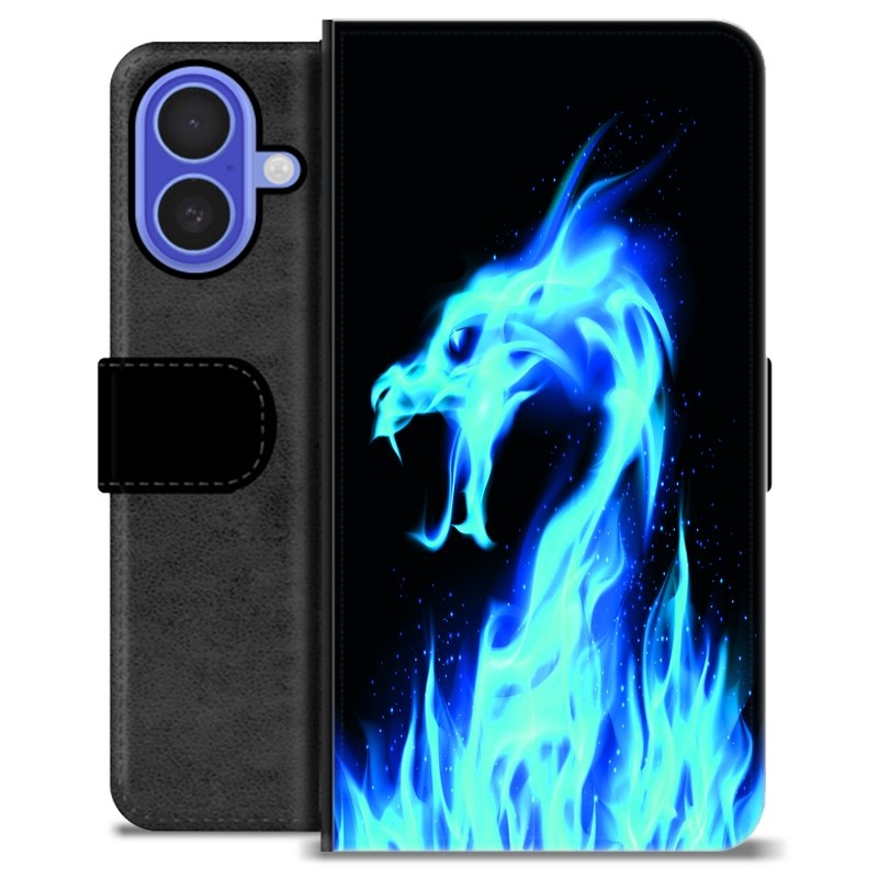 iPhone 16 Premium Portemonnee Hoesje - Blauwe Vuurdraak