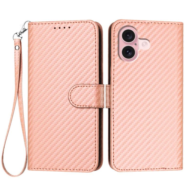 iPhone 16 Premium Portemonnee Hoesje met Riem - Koolstofvezel Textuur - Koolstofroze