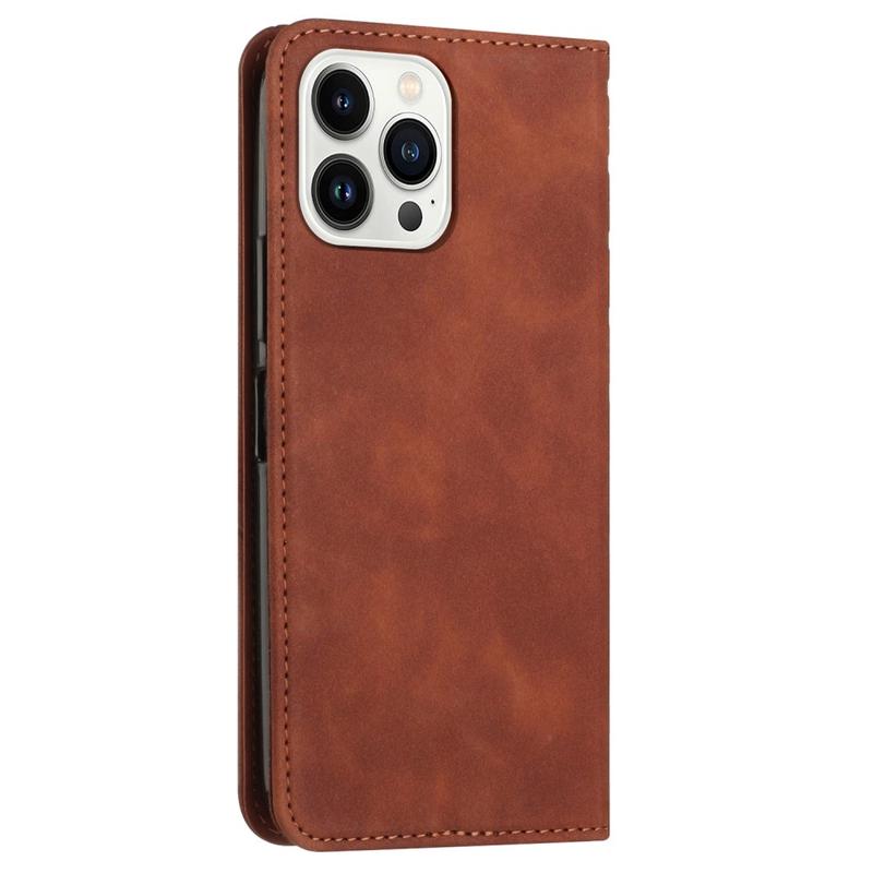 iPhone 16 Pro Max Ruitpatroon Portemonnee Hoesje met Magnetische Sluiting - Bruin