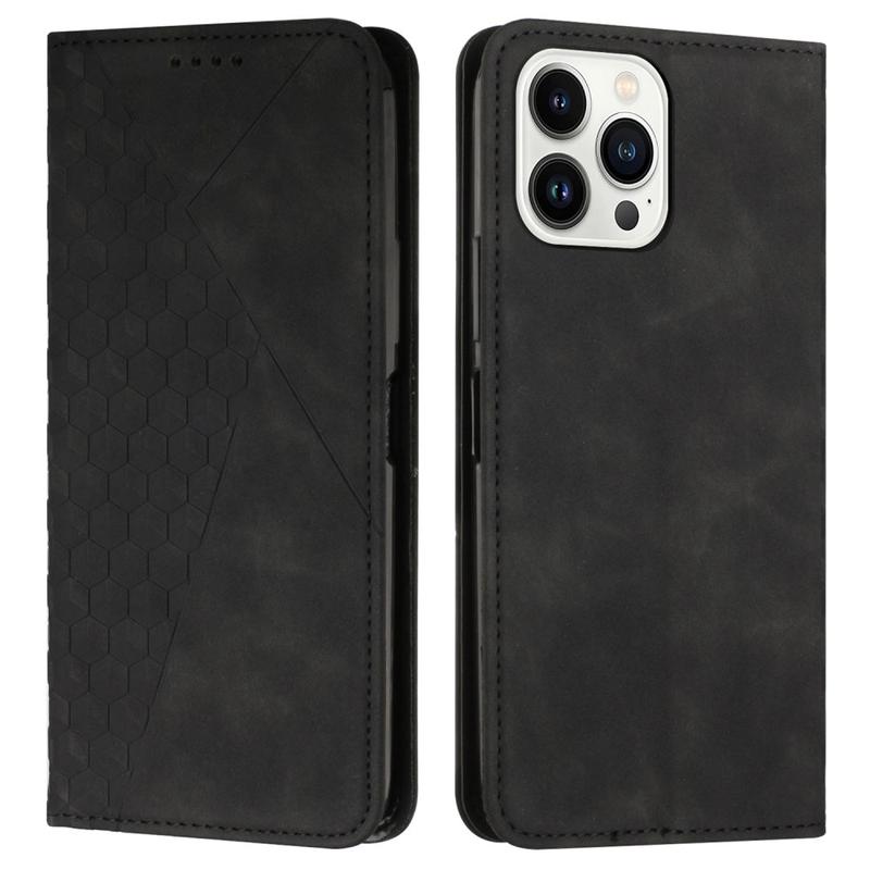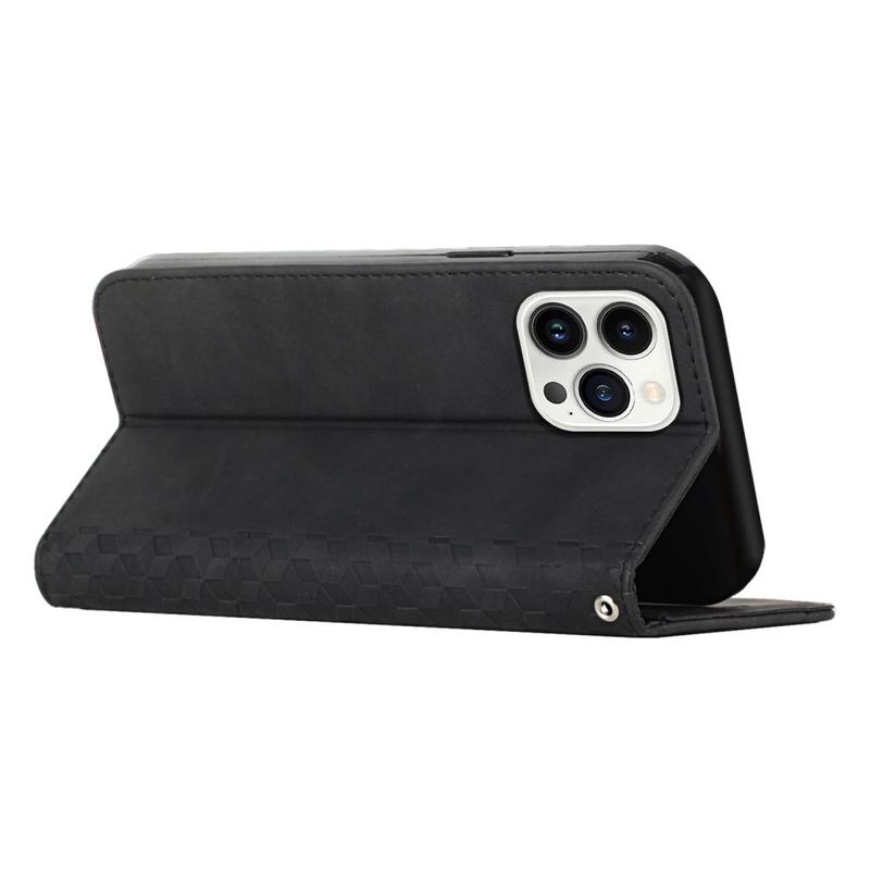 iPhone 16 Pro Ruitpatroon Portemonnee Hoesje met Magnetische Sluiting - Zwart