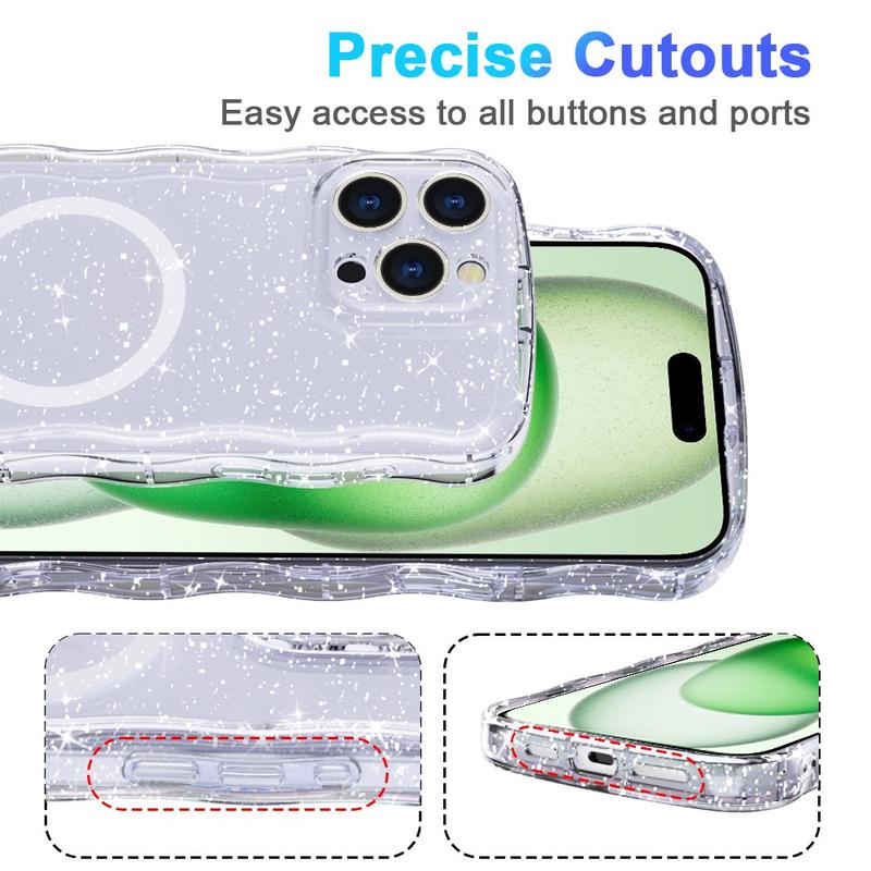 Wave-Edge Laser Glitter MagSafe TPU hoesje voor iPhone 16 Pro Max