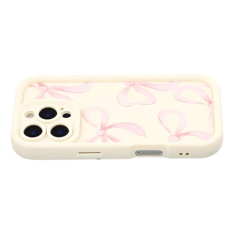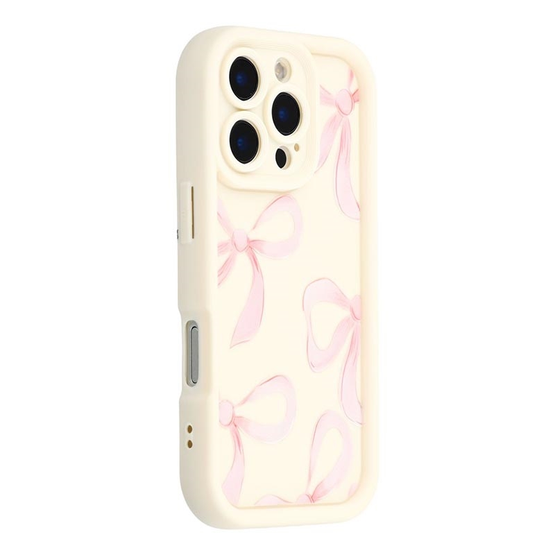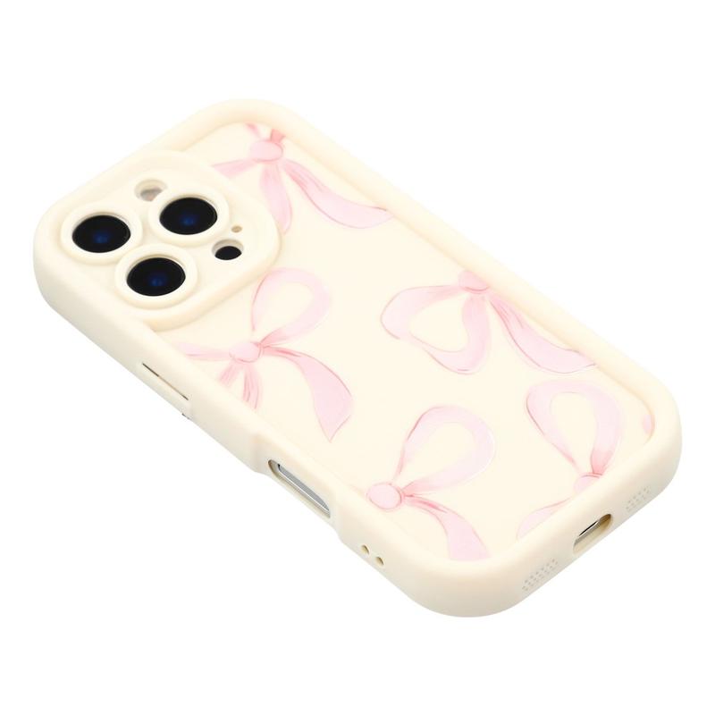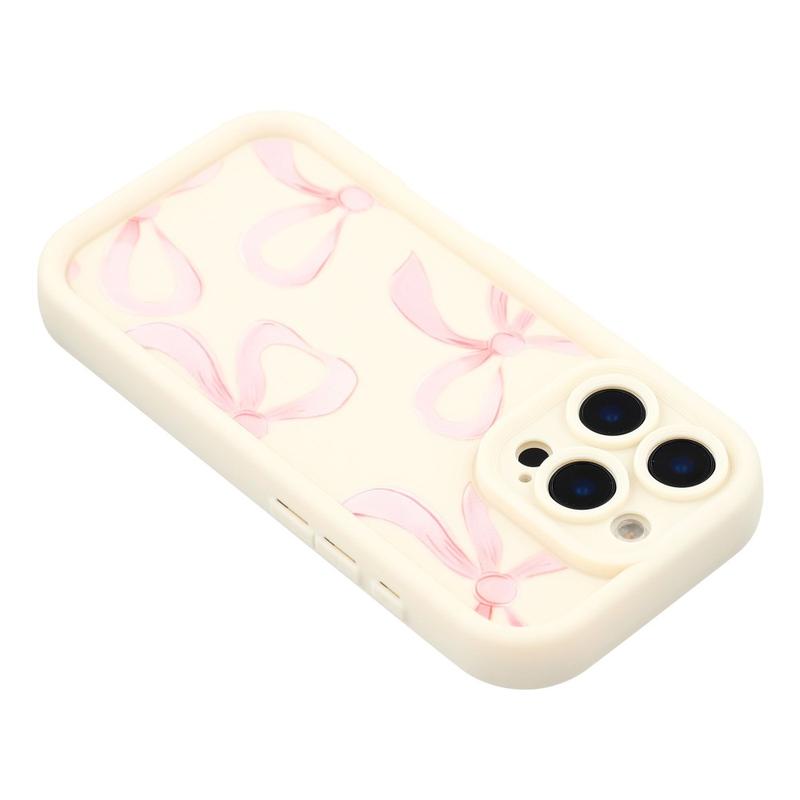 iPhone 16 Pro Max Stijlvol Schokbestendig TPU Hoesje met Opstaande Randen - Wit / Grote strik