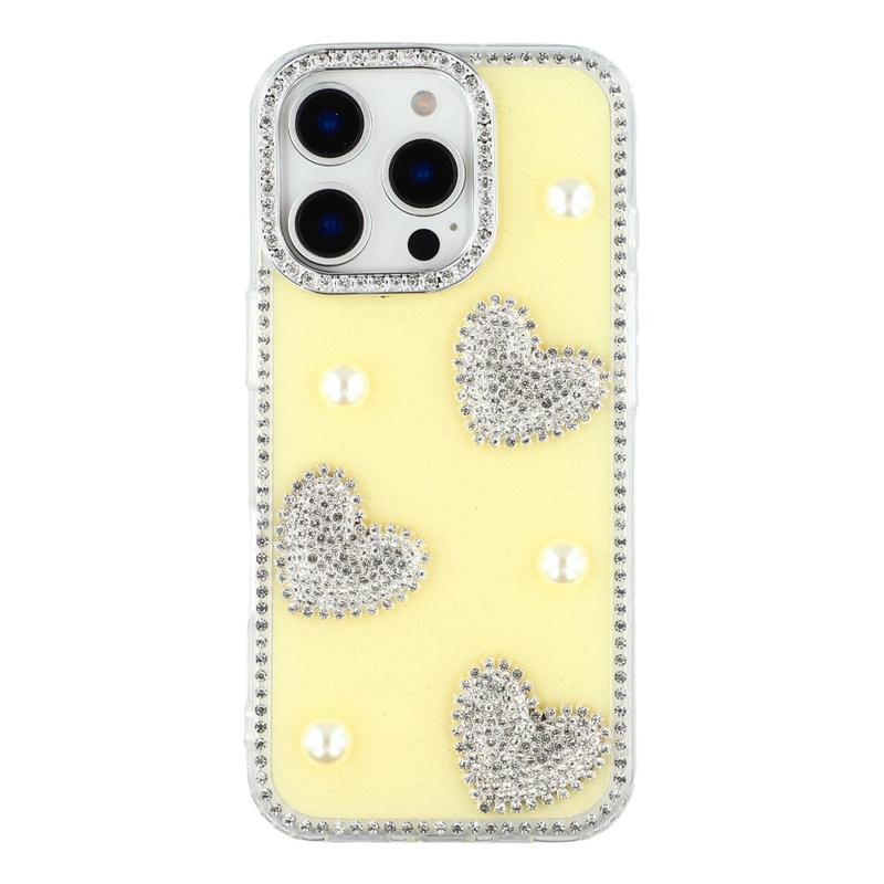Deze iPhone 16 Pro hoes combineert betrouwbare dagelijkse bescherming met glamoureuze stijl. Met glinsterende strass-steentjes rond de randen en fonkelende parelmoeren hartversieringen op de achterkant, verandert het je iPhone 16 Pro in een modieus accessoire terwijl het veilig blijft tegen krassen en stoten.