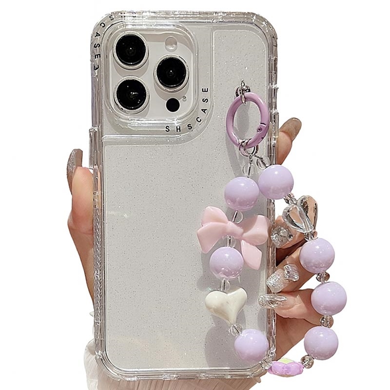 • Glitter Schokbestendig Hybride Hoesje met Polsband voor iPhone 16 Pro Max - PC + TPU Beschermhoes