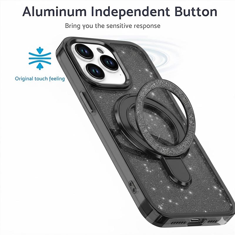 Breng stijl en bescherming samen met de iPhone 16 Pro Max glittercase, die elegante schittering combineert met betrouwbare duurzaamheid voor elke dag. Gemaakt van hoogwaardige materialen en uitgerust met een ingebouwde kickstand met metalen ring, houdt deze hoes je telefoon de hele dag veilig, functioneel en modieus.