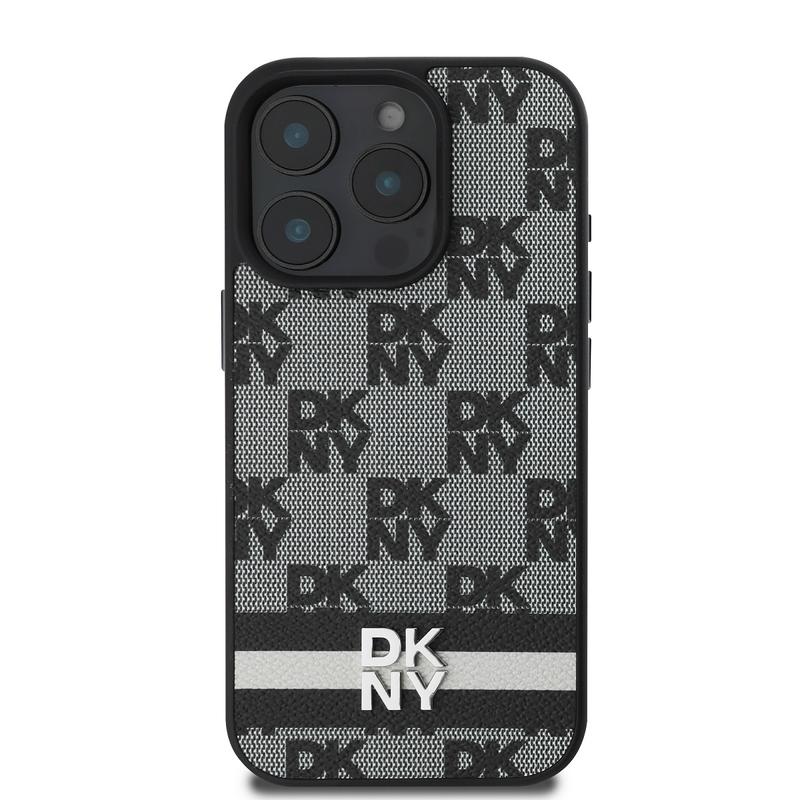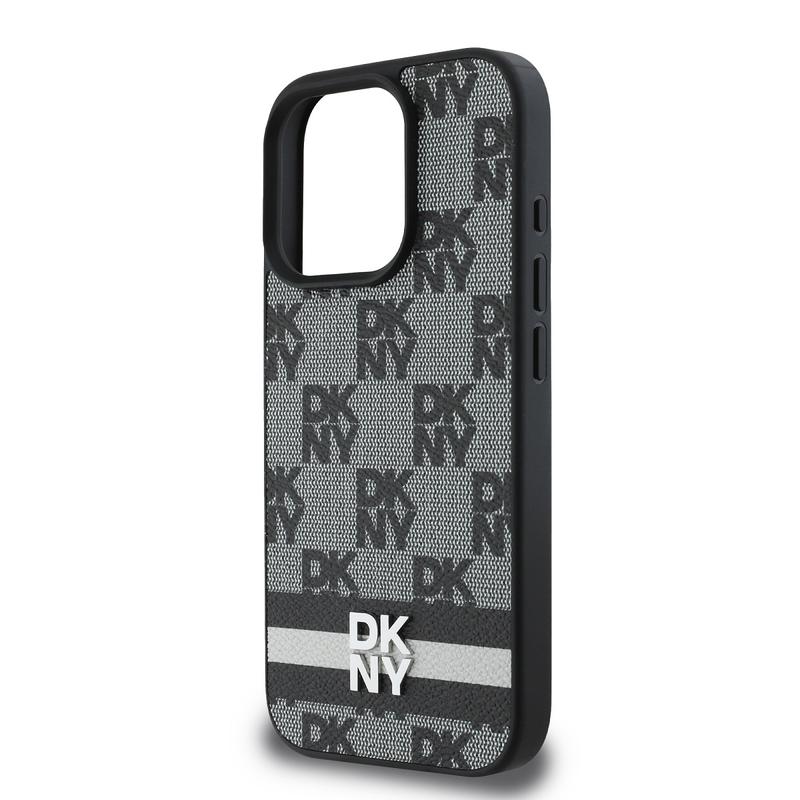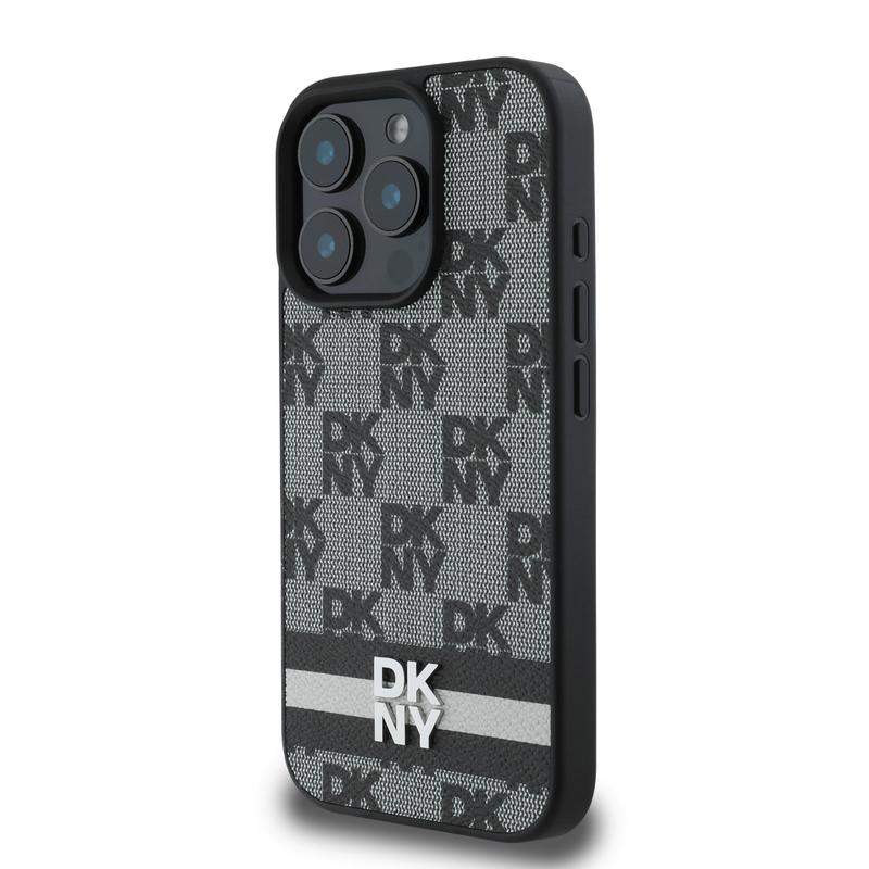 iPhone 16 Pro DKNY Geruit Patroon en Streep Hoesje - Zwart