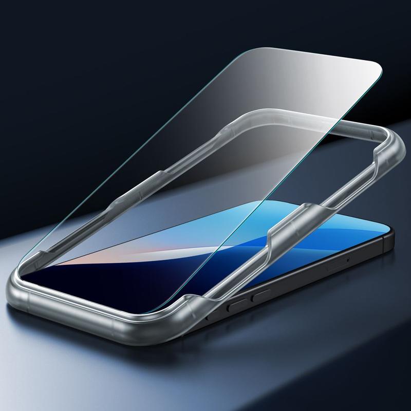 De installatie van het glas is uiterst eenvoudig - het bijgeleverde positioneringsframe vergemakkelijkt de installatie. Het is de perfecte combinatie van comfort, veiligheid en functionaliteit voor je iPhone 16 Pro.