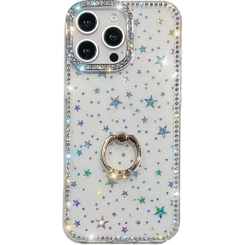Geef je iPhone 16 Pro Max onmiddellijke sterrenkwaliteit en betrouwbare bescherming voor elke dag. Deze slanke hybride hoes omhult je iPhone 16 Pro Max met glimmende strass-steentjes, een gladde glitter achterkant en een volledig draaibare metalen ring die ook dienst doet als veilige grip of bureaustandaard.