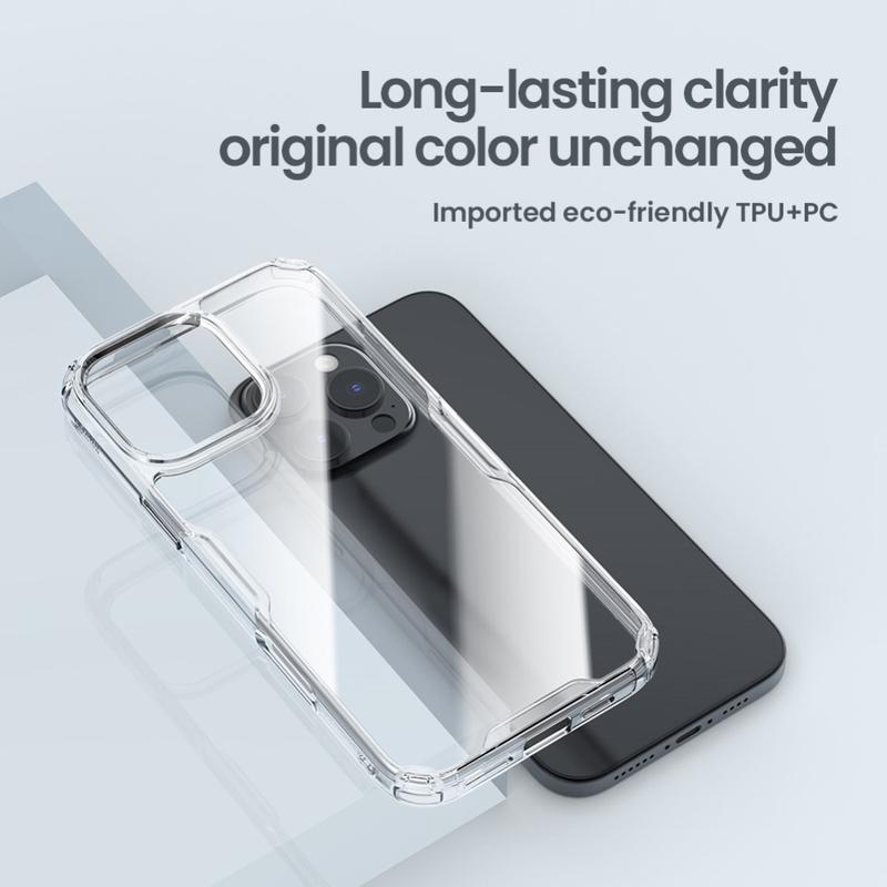 Het Nillkin Nature TPU Pro hybride hoesje beschermt je iPhone 16 Pro Max tegen krassen en alledaagse schade, en met zijn antislip design houdt hij het toestel veilig in je handen tijdens gebruik. Ook laat de transparantie van de Nillkin Nature TPU Pro hybride hoesje je iPhone 16 Pro Max schitteren met zijn fysieke uiterlijk.
