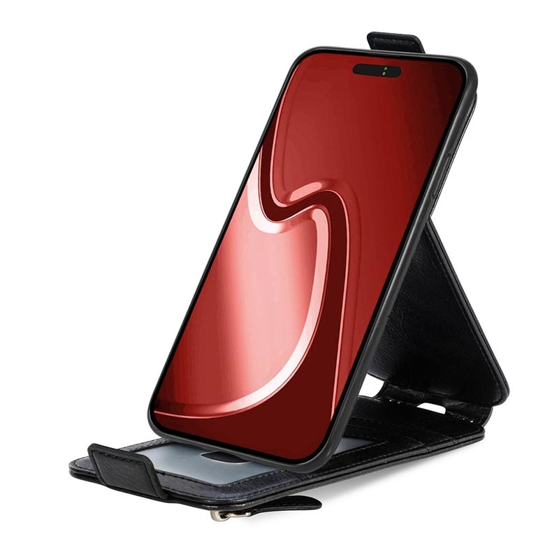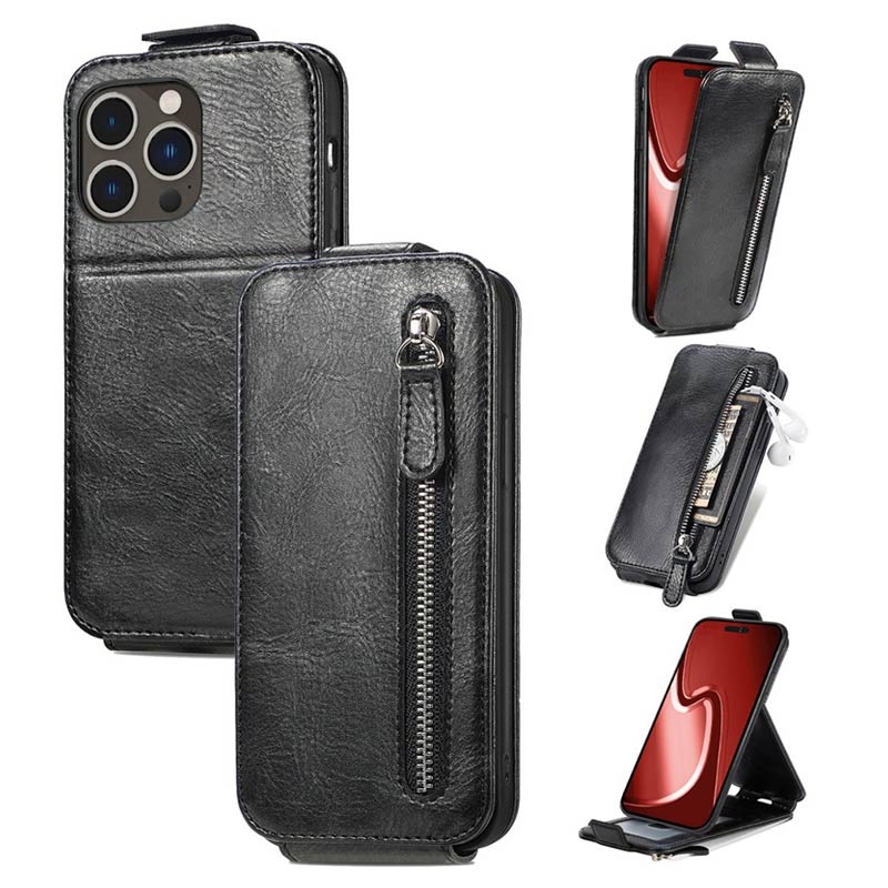 - Elegante verticale flipcase met ritssluiting voor de iPhone 16 Pro