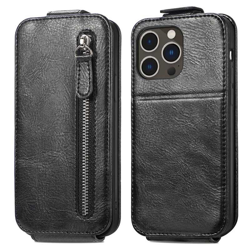 Deze verticale flipcase met ritsvak biedt je iPhone 16 Pro rondom bescherming!