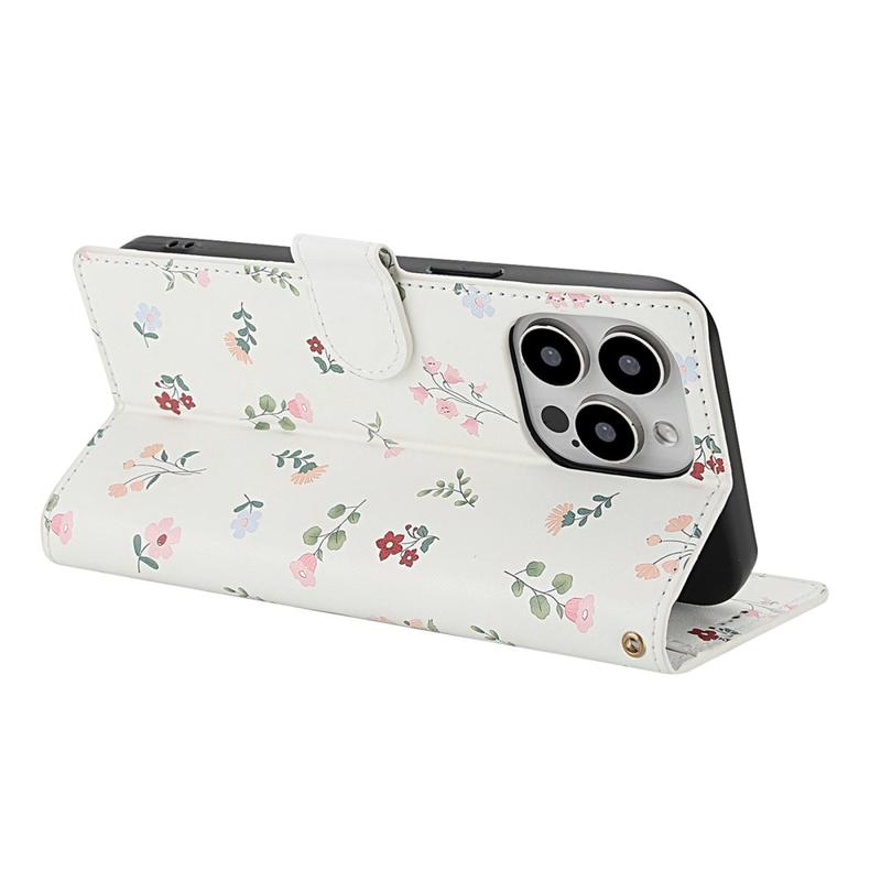 Ruitvormige Bloemen Portemonnee Hoesje voor iPhone 16 Pro - met riem en kaartsleuven