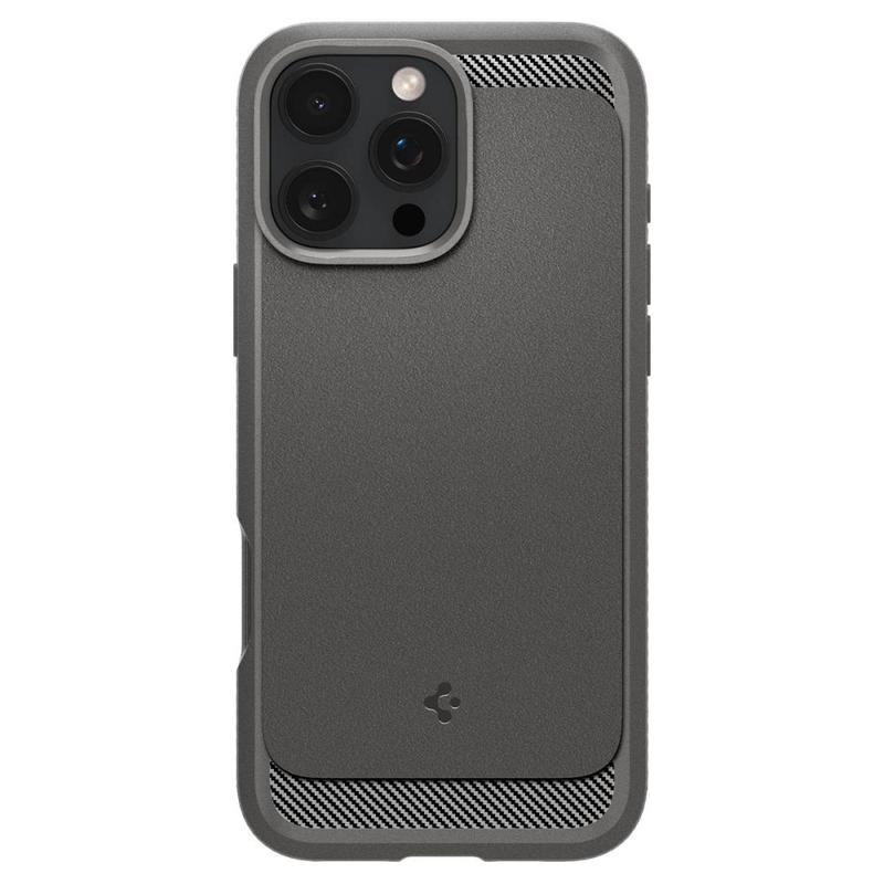 - Een elegante Spigen Rugged Armor Mag TPU-hoes voor iPhone 16 Pro