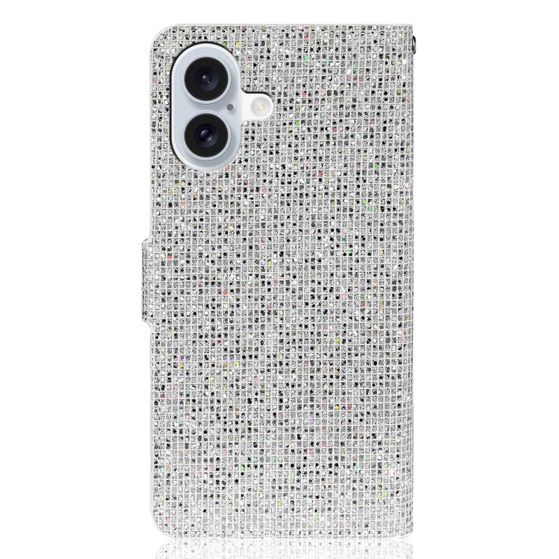 iPhone 16 Stijlvol Glitter Portemonnee Hoesje - Zilver