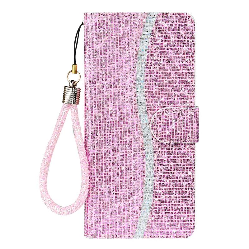 Verhoog de stijl van je iPhone 16 met deze stijlvolle glitter wallet case. Het glitterpoeder en het unieke ontwerp geven je toestel een opvallende en modieuze look. De TPU en PU materialen maken de case licht van gewicht en eenvoudig te installeren, terwijl het praktische ontwerp een portemonnee en telefoonhoesje combineert in één handige unit. Dankzij de ondersteunende standaard kun je je handen vrij houden als je films kijkt of leest, en de ultrasterke magnetische sluiting houdt al je waardevolle spullen veilig opgeborgen. Met nauwkeurige uitsparingen voor volledige toegang tot poorten, functieknoppen, luidsprekers en camera biedt deze hoes bescherming tegen dagelijkse slijtage, krassen, vlekken en schrammen. Met de handige riem kun je hem gemakkelijk dragen.