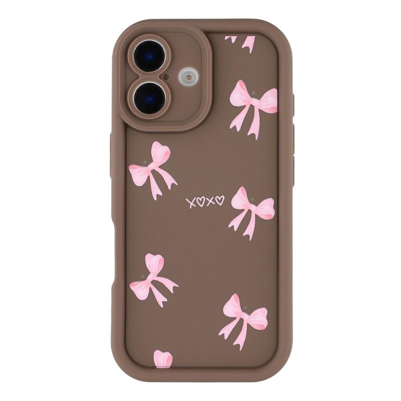 iPhone 16 Stijlvol Schokbestendig TPU Hoesje met Opstaande Randen - Bruin / strik