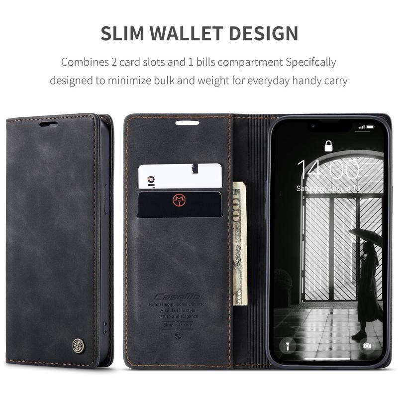 - Ingebouwde magneten houden de Caseme 013-serie portemonnee-etui gesloten