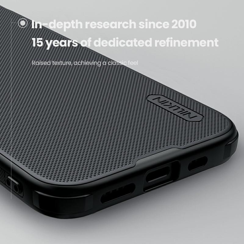 De Nillkin ontwierp de nieuwe, krachtigere Pro-versie van de Super Frosted Shield-hoes voor je kostbare iPhone 16e. Ultieme valbescherming, dankzij dubbellaags ontwerp - pc-achterkant met TPU-frame.