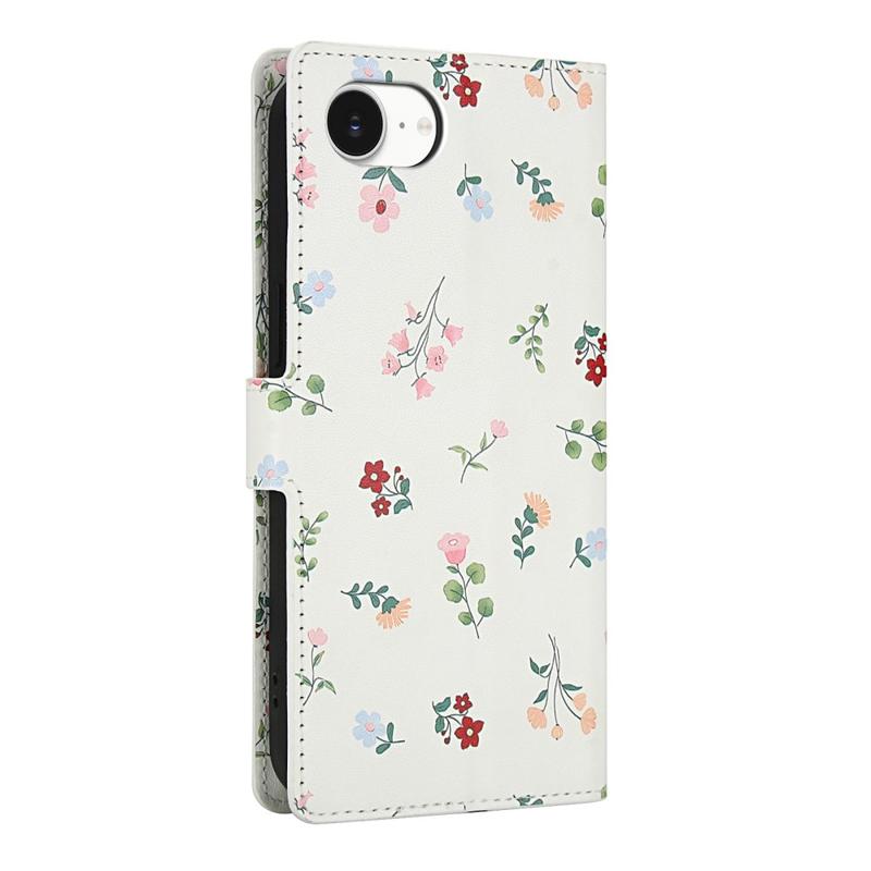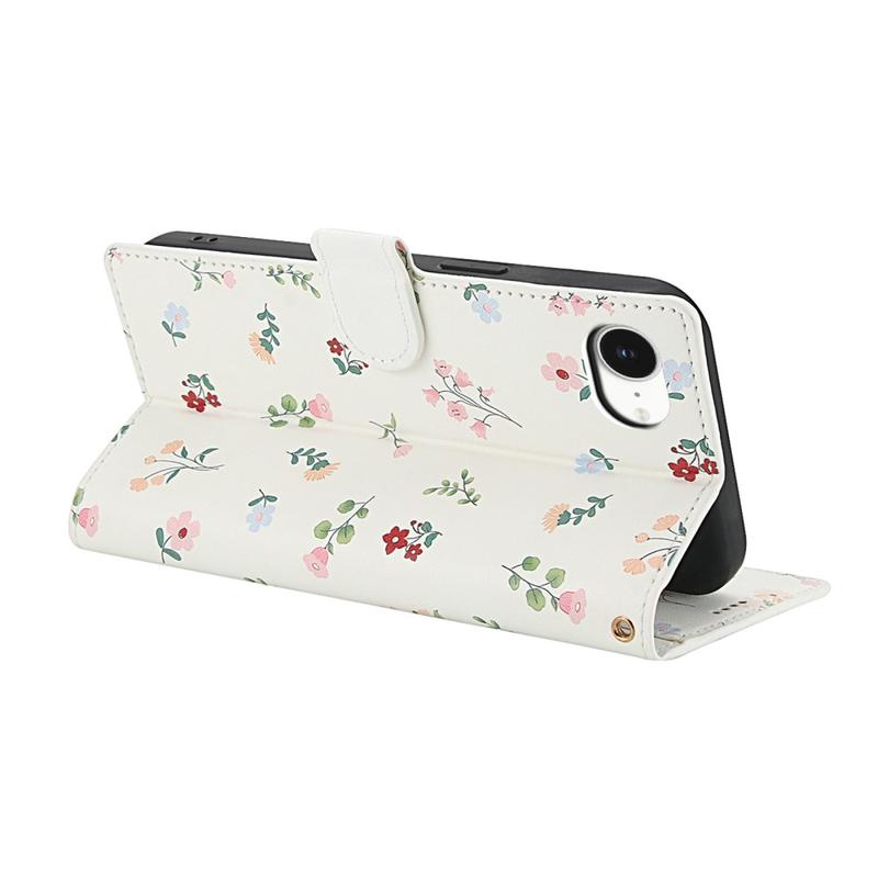 • Ruitvormige Bloemen Portemonnee Hoesje voor iPhone 16e, iPhone 17e - met riem en kaartsleuven