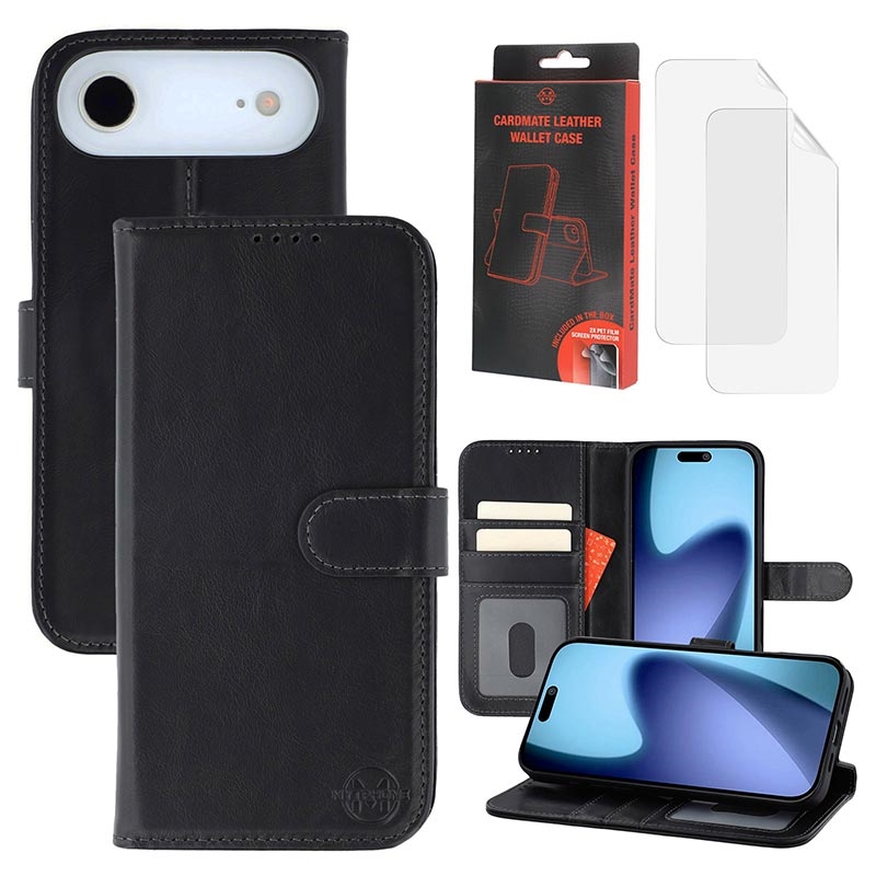 • MyTPhone CardMate Premium Lederen Portemonnee Hoesje voor iPhone Air - Stand Functie, Kaarthouder, Draadloos Opladen Ondersteuning, 2x Screen Protector