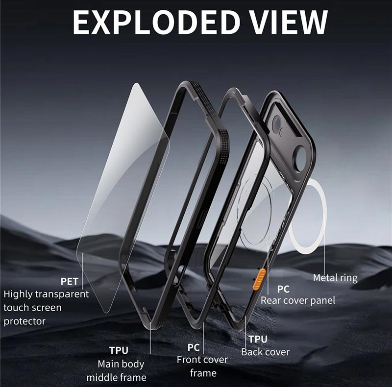 - MagSafe compatibiliteit: Ingebouwde magnetische ring ondersteunt MagSafe draadloos opladen en accessoires zonder de hoes te verwijderen.