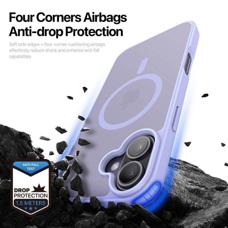 - Hybride ontwerp: matte polycarbonaat achterkant + flexibele TPU bumper met airbags op de hoeken voor schokabsorptie