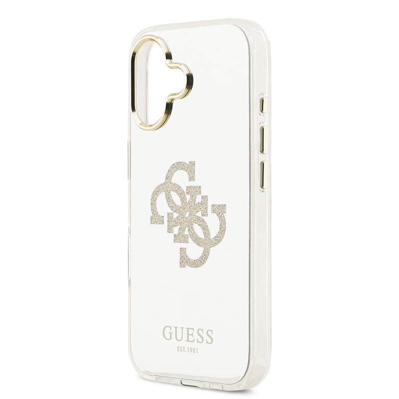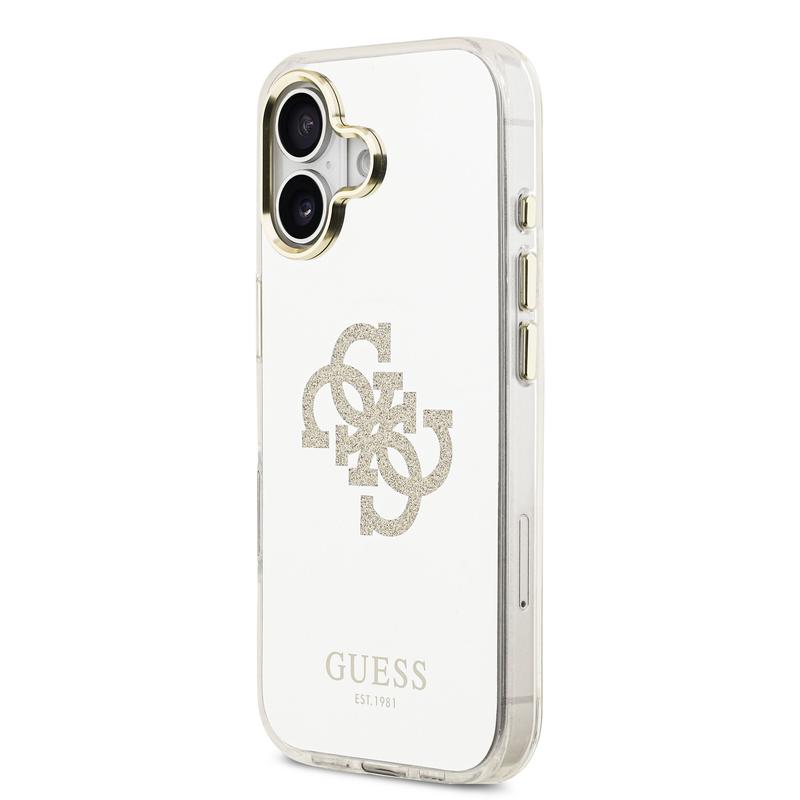Guess Mirror 4G Glitter Logo Hybride Hoesje voor iPhone 17 - MagSafe Compatibel PC/TPU Achtercover met Spiegelafwerking