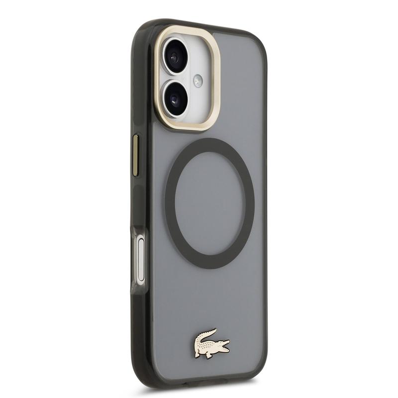 Lacoste Frosted Finish Gold Logo Hybride Hoesje voor iPhone 17 - MagSafe compatibel, goud logo en cameraframe Premium achterkant