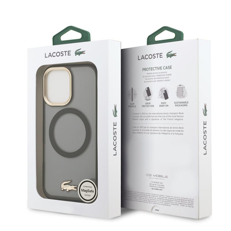 De Lacoste Frosted Finish Gold Logo MagSafe Case is de ideale keuze voor iedereen die op zoek is naar een balans tussen luxe en functionaliteit. Hij is slank genoeg voor dagelijks comfort en toch sterk genoeg om je apparaat te beschermen, terwijl de gouden details hem laten opvallen als een stijlvol accessoire.