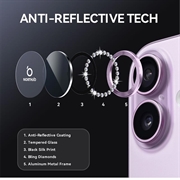 Voeg glans en bescherming toe aan je iPhone 17 met de NORTHJO Camera Lens Protector. Ontworpen met glinsterende steentjes en precisiegeslepen gehard glas, houdt het je cameralens veilig tegen krassen, stof en stoten terwijl het een vleugje elegantie en luxe toevoegt.