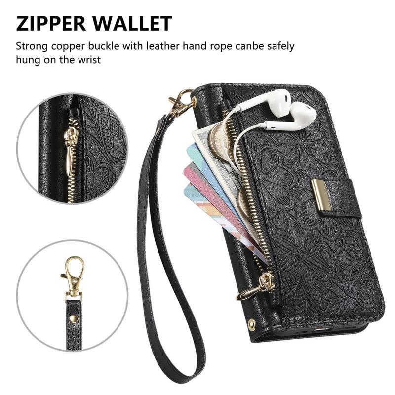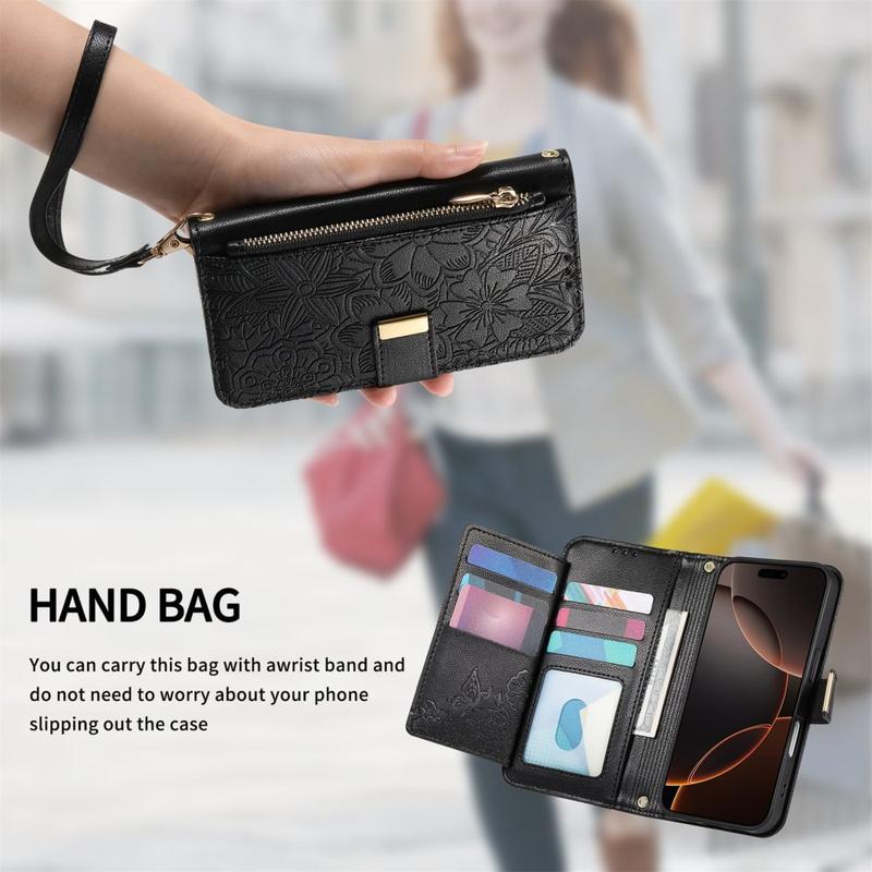 Houd je essentials georganiseerd terwijl je elegantie toevoegt aan je iPhone 17 met deze portemonneehoes met bloemenbladmotief. Ontworpen met meerdere kaartsleuven, een veilig ritsvak en een afneembare polsband, is het de perfecte mix van functionaliteit en stijl. Hij is gemaakt van duurzaam TPU en polyurethaan, biedt betrouwbare bescherming en is tegelijkertijd een modieuze alles-in-één portemonnee.