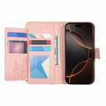 Portemonnee Hoesje met bloemen en bladmotief met Ritszakje & Polsbandje voor iPhone 17