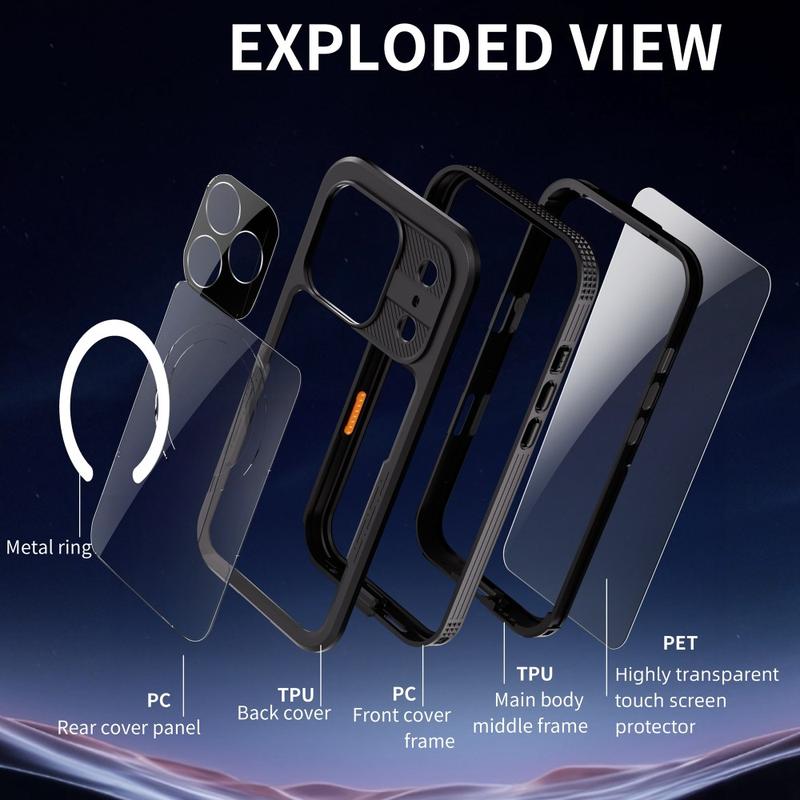 Bescherm je iPhone 17 Pro zonder zijn stijl te verbergen. Deze REDPEPPER case combineert polycarbonaat met zacht aanvoelende TPU bumpers en PET, waardoor water, stof en sneeuw worden buitengesloten terwijl het bestand is tegen dagelijkse valpartijen. Ingebouwde magneten passen perfect bij MagSafe accessoires, zodat draadloze voeding en autohouders moeiteloos blijven werken.
