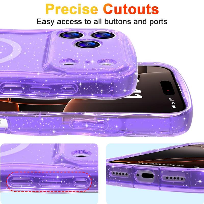 iPhone 17 Pro Max Wave-Edge Laser Glitter MagSafe hoesje - Doorschijnend Paars