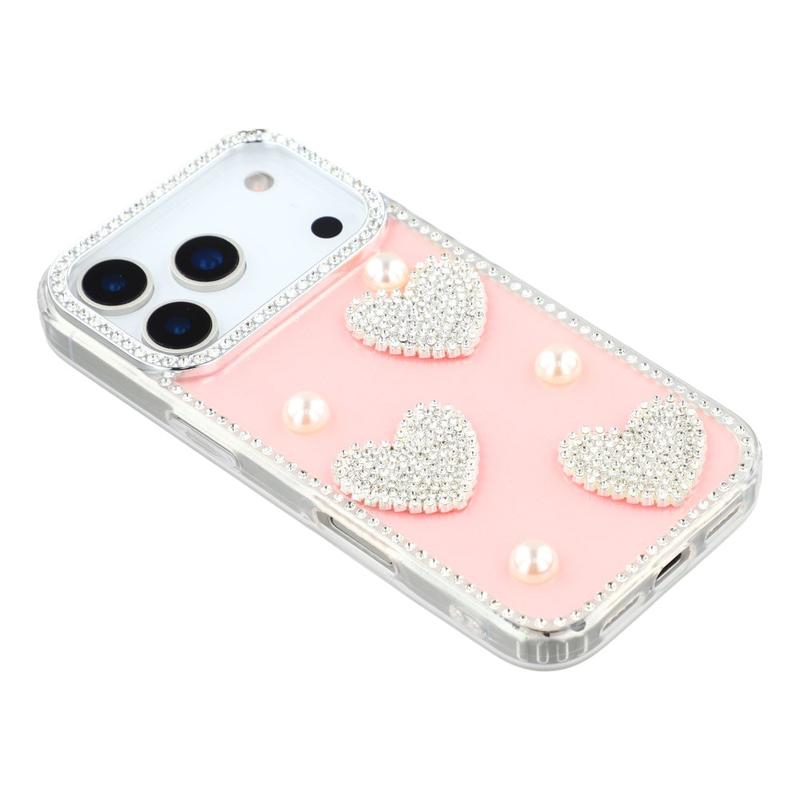 Deze iPhone 17 Pro hoes combineert betrouwbare dagelijkse bescherming met glamoureuze stijl. Met glinsterende strass-steentjes rond de randen en fonkelende parelmoeren hartversieringen op de achterkant, verandert het je iPhone 17 Pro in een modieus accessoire terwijl het veilig blijft tegen krassen en stoten.