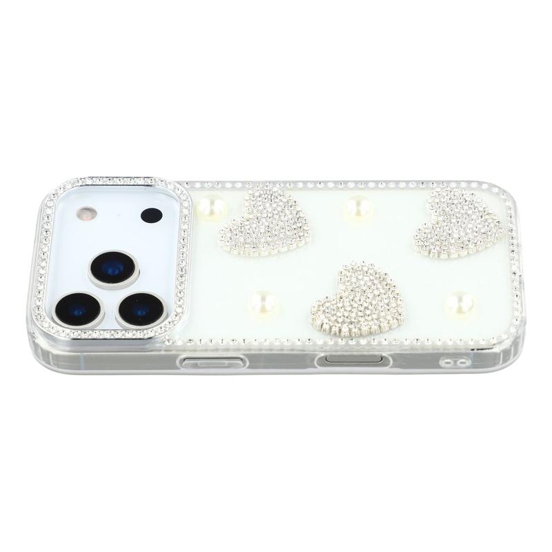 Deze iPhone 17 Pro hoes combineert betrouwbare dagelijkse bescherming met glamoureuze stijl. Met glinsterende strass-steentjes rond de randen en fonkelende parelmoeren hartversieringen op de achterkant, verandert het je iPhone 17 Pro in een modieus accessoire terwijl het veilig blijft tegen krassen en stoten.