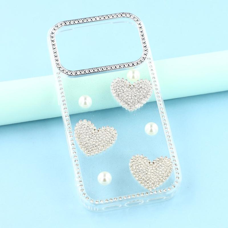 Deze iPhone 17 Pro hoes combineert betrouwbare dagelijkse bescherming met glamoureuze stijl. Met glinsterende strass-steentjes rond de randen en fonkelende parelmoeren hartversieringen op de achterkant, verandert het je iPhone 17 Pro in een modieus accessoire terwijl het veilig blijft tegen krassen en stoten.