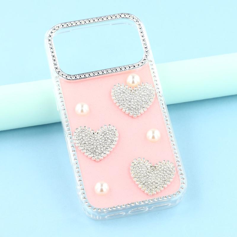 Deze iPhone 17 Pro Max hoes combineert betrouwbare dagelijkse bescherming met glamoureuze stijl. Met glinsterende strass-steentjes rond de randen en fonkelende parelmoeren hartversieringen op de achterkant, verandert het je iPhone 17 Pro Max in een modieus accessoire terwijl het veilig blijft tegen krassen en stoten.