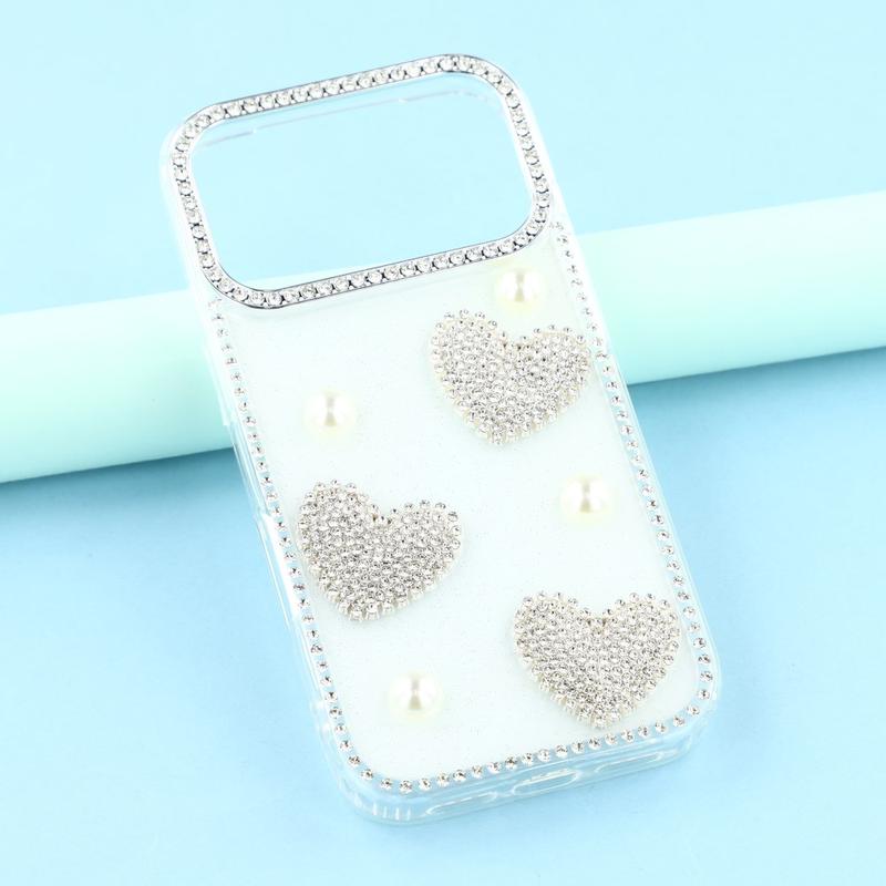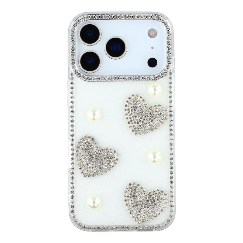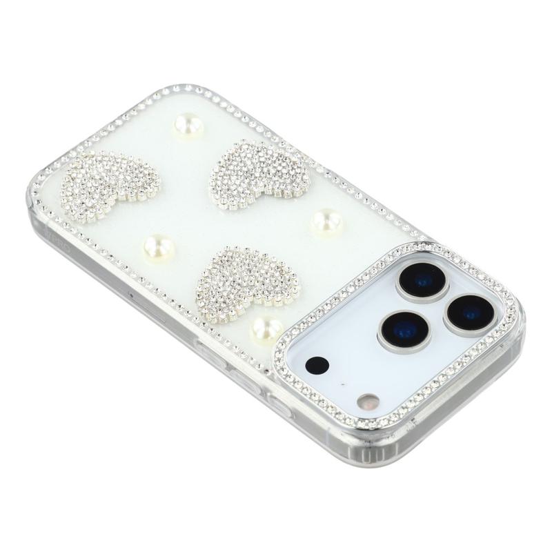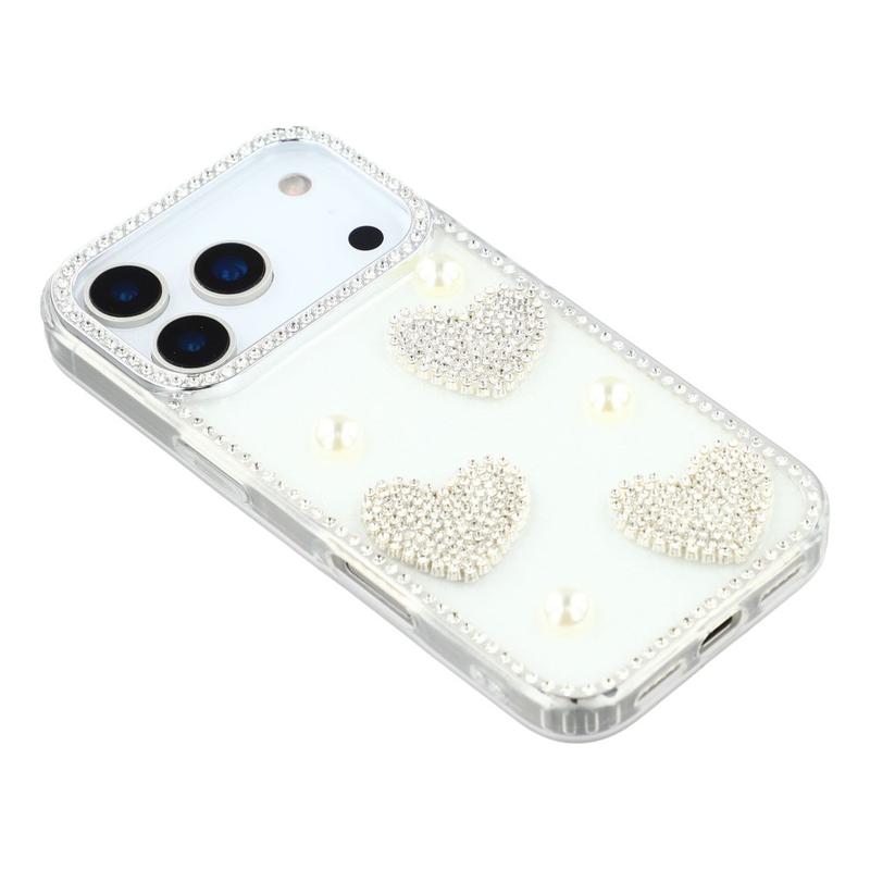 Deze iPhone 17 Pro Max hoes combineert betrouwbare dagelijkse bescherming met glamoureuze stijl. Met glinsterende strass-steentjes rond de randen en fonkelende parelmoeren hartversieringen op de achterkant, verandert het je iPhone 17 Pro Max in een modieus accessoire terwijl het veilig blijft tegen krassen en stoten.