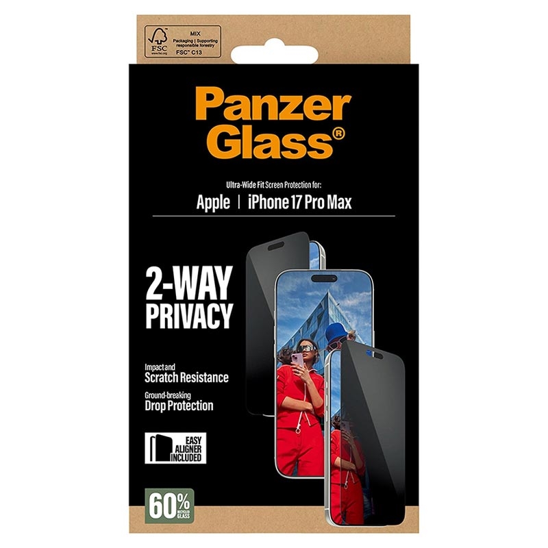 PanzerGlass Ultra-Wide Fit EasyAligner 2-Way Privacy Glazen Screenprotector voor iPhone 17 Pro Max
