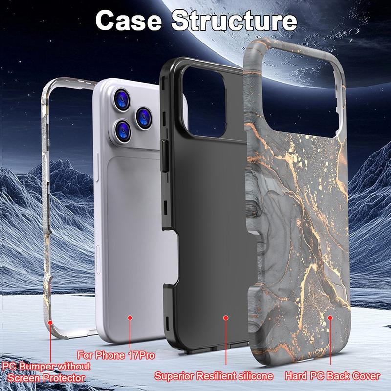 iPhone 17 Pro Luxe Marmer Hybride Hoesje - Stijlvolle PC en TPU Schokbestendige Telefoonhoes met Camerabescherming