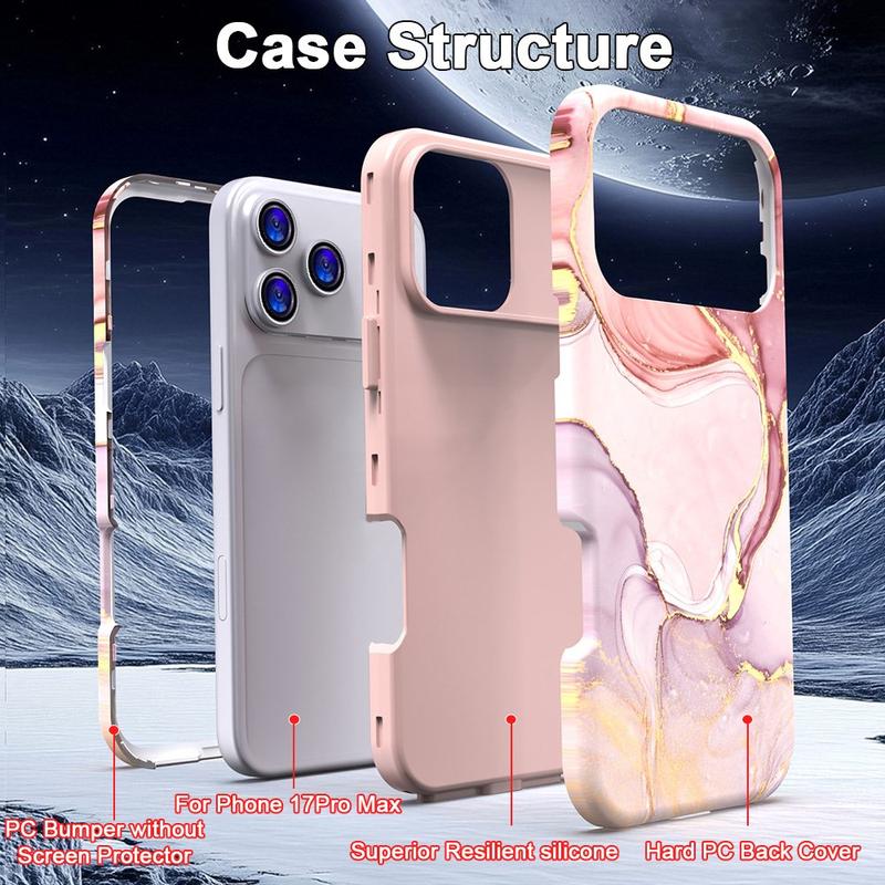 iPhone 17 Pro Max Luxe Marmer Hybride Hoesje - Stijlvolle PC en TPU Schokbestendige Telefoonhoes met Camerabescherming